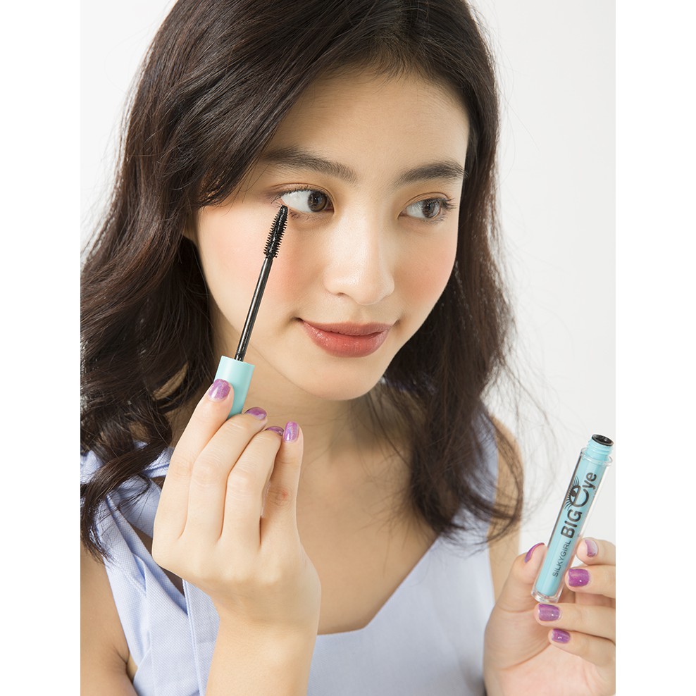 Mascara làm dài và cong mi Silkygirl Big Eye Collagen Waterproof Mascara sẽ thuyết phục được lựa chọn mua hàng khó tính của mọi cô nàng. Sản phẩm được thiết kế hình trụ tròn, cùng với đó là lớp phủ xanh dương. Đầu cọ bên trong có dáng cứng cáp và tròn, sở hữu nhiều sợi lông thanh mảnh, giúp hàng mi được chải đều.