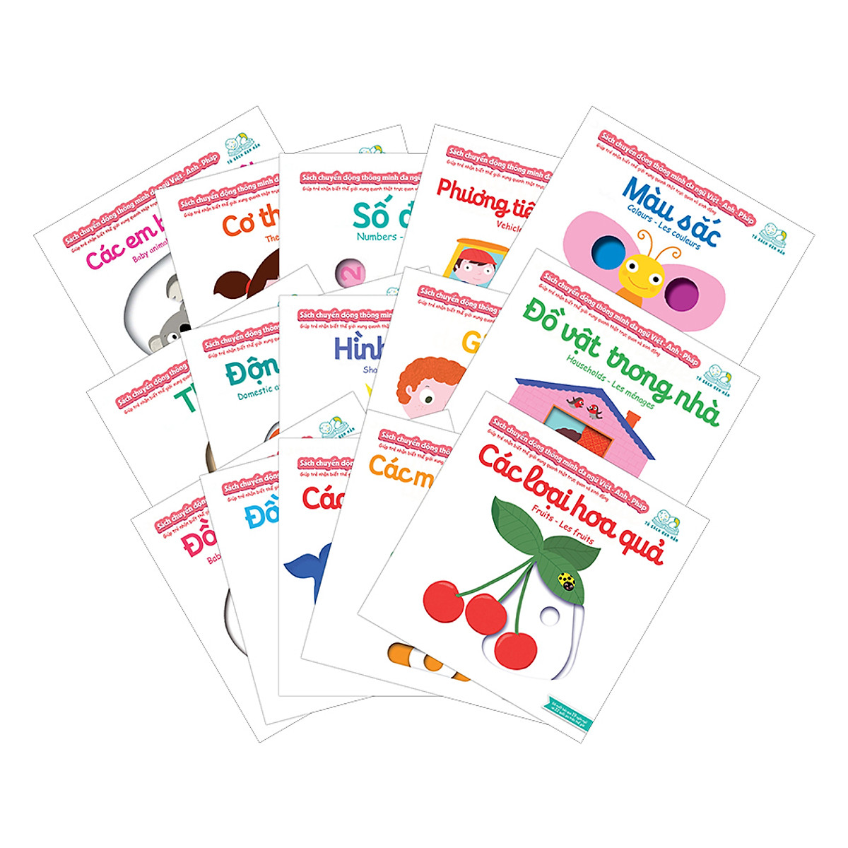 Bộ 15 cuốn sách chuyển động thông minh đa ngữ Việt - Anh - Pháp