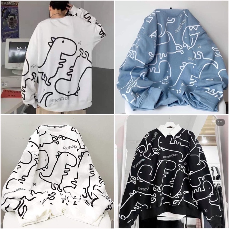 3. Áo nỉ sweater nam nữ khủng long siêu dễ thương