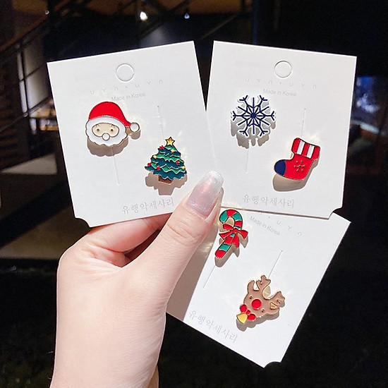 Các bạn gái luôn yêu thích làm điệu với những đôi khuyên tai. Mùa Noel là dịp để bạn tặng cho các nàng những đôi khuyên tai phong cách Giáng sinh để bổ sung vào bộ sưu tập của các nàng. Sản phẩm khuyên tai mang phong cách Giáng sinh được làm bằng chất liệu hợp kim và có thể kết hợp với nhiều phong cách thời trang khác nhau. Các bạn gái sẽ trông thật đáng yêu và duyên dáng với các đôi khuyên tai Giáng sinh này.