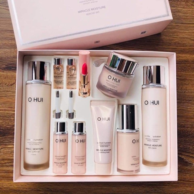 Bộ Dưỡng Da Trắng Hồng Ohui Miracle Moisture Special Set là bộ chăm sóc da với 10 sản phẩm khác nhau đến từ thương hiệu Ohui - thương hiệu mỹ phẩm Hàn Quốc chiếm được rất nhiều tình cảm của các chị em phụ nữ từ xưa tới nay. Với thành phần độc quyền là Chiffon Ceramide™, bộ sản phẩm Ohui Miracle Moisture có khả năng kết nối các tế bào sừng và protein bên trong da một cách chặt chẽ, giúp điều chỉnh và lưu giữ độ ẩm trên da một cách vô cùng hiệu quả. Bên cạnh đó, được chiết xuất từ hoa mẫu đơn với hương thơm dịu nhẹ, Ohui Miracle Moisture tự hào là bộ sản phẩm chăm sóc da hoàn hảo trong việc cấp ẩm, mang lại làn da đầy sinh khí và tươi trẻ cho phái đẹp. Thành phần dưỡng đậm đặc và độ an toàn bậc nhất giúp duy trì độ ẩm mịn dài lâu trên da cũng như dễ dàng thấm vào da ngay từ lần đầu tiên sử dụng. Hơn bao giờ hết, Ohui Miracle Moisture đã được chứng nhận độc quyền sở hữu công thức cấp ẩm ưu việt và thân thiện với làn da, tự tin không gây kích ứng da hay xuất hiện các ảnh hưởng xấu tới làn da phái đẹp. Quả là một bộ sản phẩm cực kì tuyệt vời và xứng đáng làm món quà ý nghĩa dành tặng vợ trong ngày 20/10 sắp tới phải không nào?