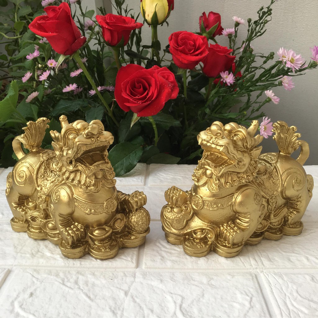 Cặp tượng tỳ hưu màu vàng sơn đồng làm bằng chất liệu bột đá poly sơn đồng sẽ là món quà phù hợp để tặng cho chồng trưng bày trong phòng làm việc. Với kích thước cao 11.5 cm - dài 13.5cm - rộng 7 cm và tạo hình bắt mắt sang trọng, đây sẽ là lựa chọn phù hợp để trang trí bàn làm việc cũng như mang lại may mắn và thể hiện uy nghiêm của một người lãnh đạo.