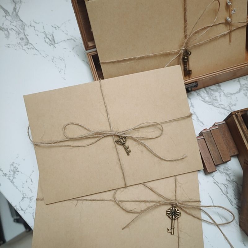 Bao thư kraft chìa khoá đồng mini kèm giấy viết thư gửi ngàn lời yêu