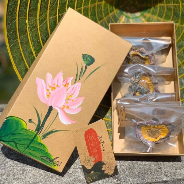 Sản phẩm có hộp đi kèm để bạn đem tặng cho bạn gái. Giá của trà hoa sen là 250.000VND. Bạn có thể mua được trà qua website beemart.vn bằng cách nhấn vào đây.