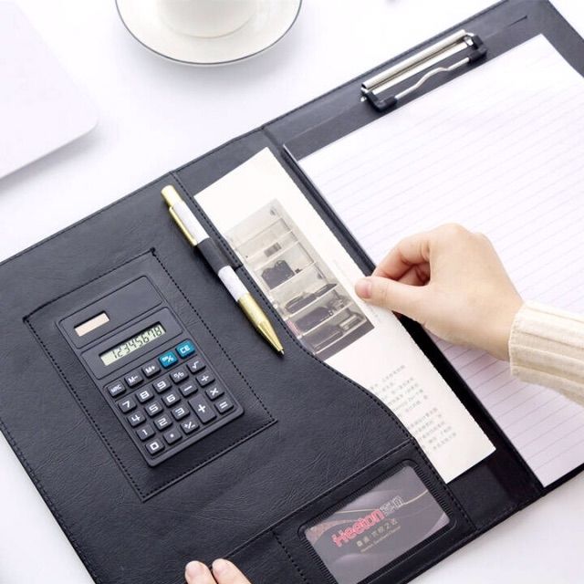 Bìa trình ký da có máy tính Heeton Q8839 là một sản phẩm độc đáo, thiết thực với mức giá hợp lý mà bạn có thể tham khảo làm quà tặng thầy cô nhân ngày 20/11. Sản phẩm được làm từ chất liệu da với màu đen sang trọng, lịch sự, chắc chắn, thiết kế hiện đại với chỗ để cardvisit, bút cài kèm máy tính tiện dụng. Bìa da kẹp hồ sơ này có kích thước 245mm x 322mm, phù hợp với nhu cầu sử dụng của các giáo viên.