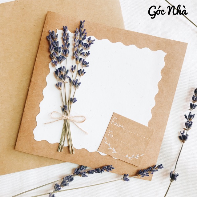 Thiệp chúc mừng cũng là một lựa chọn phổ biến trong những dịp tri ân thầy cô như 20/11. Giống như những bó hoa tươi hay những món quà, những tấm thiệp cũng có thể thay học sinh thể hiện được thành ý của mình dành cho thầy cô giáo. Thiệp hoa khô lavender oải hương handmade giấy kraft nâu vintage cổ điển này sở hữu thiết kế trang nhã, tinh tế mà các thầy cô cực kỳ yêu thích. Mẫu thiệp này không chỉ sang trọng, tinh tế mà còn có mùi thơm ngọt ngào của lavender, xứng đáng để bạn gửi gắm vào đó những lời chúc tốt đẹp.