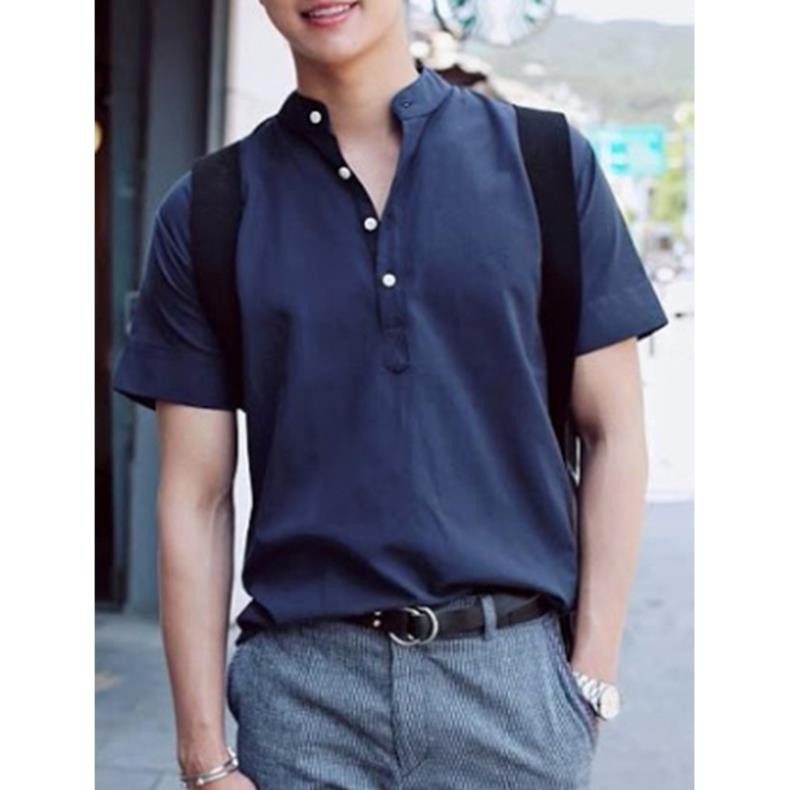 9. Áo sơ mi nam tay ngắn cổ trụ