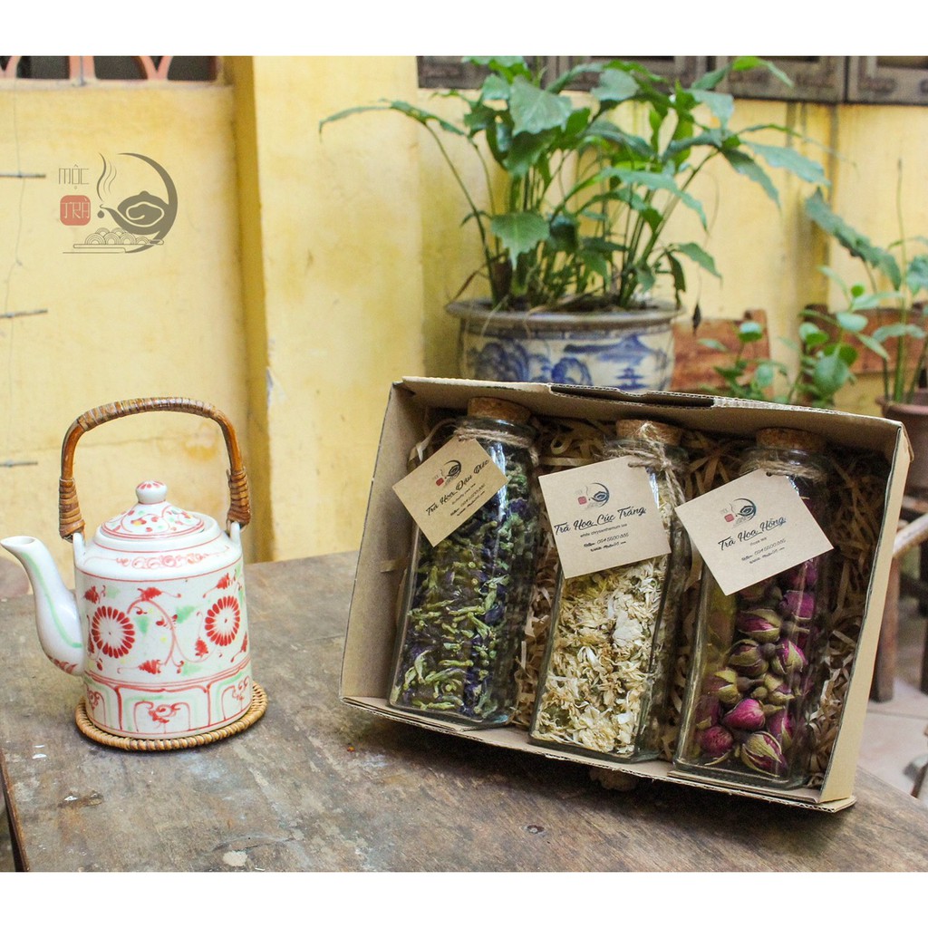 Các loại trà thảo mộc sấy khô tốt cho sức khỏe là một gợi ý quà tặng thầy cô rất độc đáo và ý nghĩa mà bạn có thể tham khảo. Combo 3 lọ trà hoa cúc đậu biếc hoa hồng sấy khô này là hàng loại 1 thơm ngon đến từ thương hiệu Mộc Trà 98, rất thích hợp làm quà tặng. Dung tích mỗi lọ là 350ml, bao gồm các loại hoa cúc trắng, hoa cúc vàng và hoa hồng. Uống trà thảo mộc thường xuyên sẽ giúp cơ thể được khỏe mạnh, giải tỏa căng thẳng, ngăn ngừa bệnh tật, đồng thời làm đẹp da, tăng cường sức đề kháng và nhiều công dụng khác.