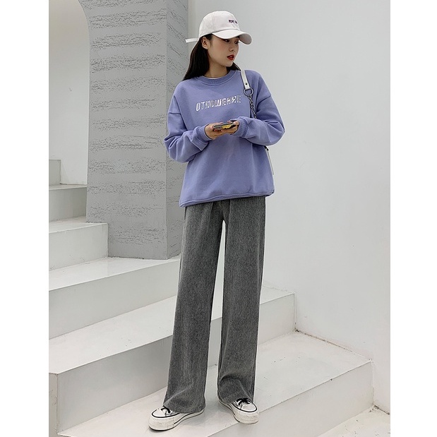 Quần dài nhung kẻ phong cách Hàn Quốc thời trang sẽ đánh cắp trái tim của mọi cô gái. Chiếc quần có ống quần rộng đi kèm đường may sọc giúp nàng che những khuyết điểm ở thân dưới. Chất liệu cotton và sợi polyester mềm mại, tạo cảm giác thoải mái và ấm áp khi mặc trong thời tiết lạnh. Với 7 màu vô cùng dễ thương có sẵn, nàng có thể mix&match chiếc quần nhung tăm với áo croptop, áo len hoặc áp sơ mi đều phù hợp. Nhưng đừng quên đi kèm cùng outfit này là một đôi giày sneaker trẻ trung năng động nhé.