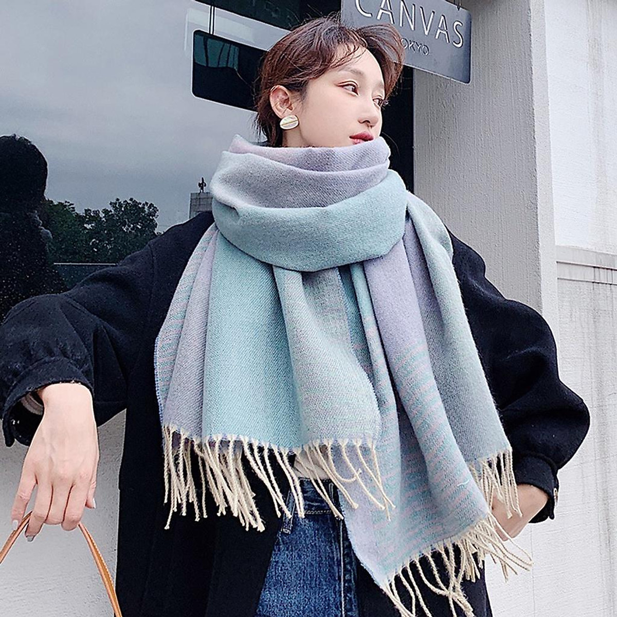 Khăn quàng cổ nữ len cashmere - Khăn choàng thời trang cao cấp K-TB hẳn chính là món đồ mà bạn đang tìm kiếm. Sản phẩm được làm từ sợi len cashmere dày dặn giúp nàng giữ ấm, nhưng cũng không kém phần mịn màng nhẹ nhàng. Chiếc khăn có kích thước khổ lớn 200 x 70 cm (chiều dài x chiều rộng) để người dùng có thể cuốn thành nhiều lớp, bảo vệ cổ trước cái lạnh của thời thiết. Khăn có sẵn với 2 màu lam tím và vàng xám, được thiết kế màu ombre vô cùng tinh tế và sang trọng. Với chiếc khăn quàng, nàng có thể dễ dàng phối đi kèm mọi outfit từ váy dài cho tới quần ống rộng.