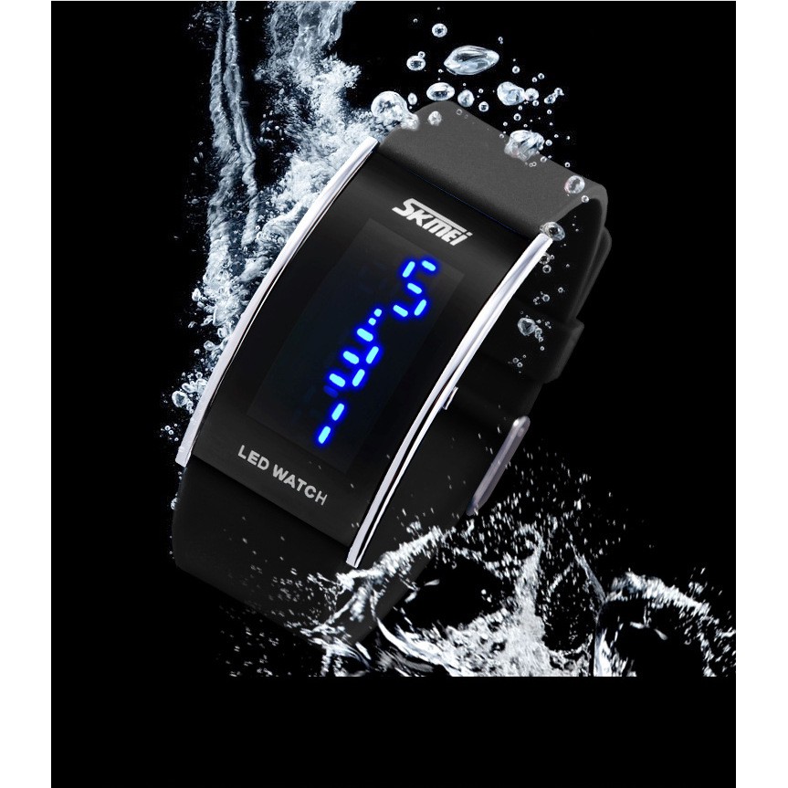 Điều đầu tiên khi nói đến đồng hồ điện tử Skmei 0805 đó chính là thiết kế mặt đồng hồ theo hình chữ nhật uốn cong khá lạ mắt và mới lạ. Thông tin giờ sẽ được hiển thị bằng đèn LED thay vi kim số. Các thông số sẽ được chiếu theo chiều dọc lần lượt là giờ, phút, giây, một cách vô cùng sáng tạo, khiến người dùng vô cùng bất ngờ và thích thú. Nhờ vậy mà đây cũng là một thiết kế tối giản, nhưng vẫn giữ trong mình sự thanh lịch, hiện đại và thời thượng. Vỏ máy làm từ hợp kim titan nhập khẩu, công nghệ mạ điện tiên tiến, không gây dị ứng, an toàn cho da tay người sử dụng. Mặt kính khoáng, độ cứng tốt, giúp chống trầy xước hiệu quả. Khả năng chống nước của sản phaamrm ở mức 3ATM cùng dây đeo silicon bền bỉ sẽ giúp người đeo thoải mái hoạt động như đi mưa, rửa tay, bơi lội mà không sợ ảnh hướng đến đồng hồ. Ngoài ra, phần dây silicon mềm dẻo, chống bụi, chống tĩnh điện, không ám mùi khi nhiễm nước, không gây kích ứng, rất an toàn khi sử dụng. Người dùng có thể điều chỉnh dây đeo theo kích cỡ cổ tay của mình, mang lại sự thoải mái tuyệt đối khi đeo.