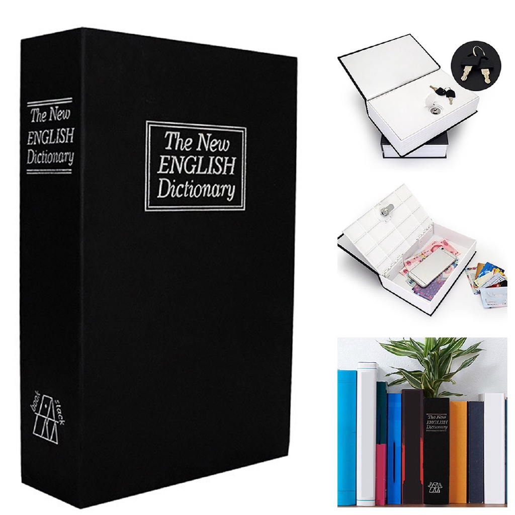 Điều thú vị của chiếc hộp bảo mật này chính là thiết kế vẻ ngoài trông giống hệt như một cuốn từ điển kích thước 11.5cm x 5.5cm x 18cm. Vì vậy, hộp bí mật rất dễ dàng để "ngụy trang" khi được đặt trên giá sách, giúp bảo vệ an toàn món đồ bên trong khỏi mọi con mắt tò mò. Ngoài ra, hộp còn được trang bị thêm khóa mã tiện dụng để tăng thêm sự kín đáo, riêng tư. Hộp bảo mật hình cuốn từ điển được làm hoàn toàn từ chất liệu bìa carton, nhựa và thép không rỉ, nên rất nhẹ và bền.