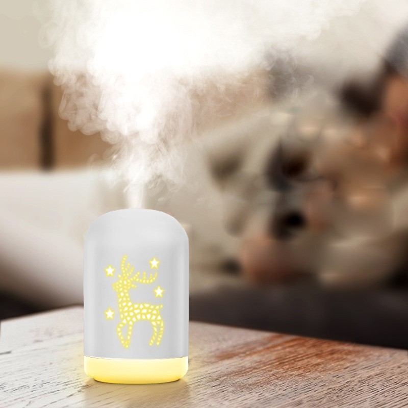 Khi mua máy phun sương tạo ẩm, bạn sẽ nhận được một bộ sản phẩm bao gồm một máy phun sương tạo ẩm hình hươu xinh xắn kèm đèn led, một chiếc cáp USB và hai lõi tăm bông. Máy có khả năng phun sương nano và khuếch tán không khí, đem đến một không gian trong lành và tốt cho sức khỏe. Máy chạy rất êm, yên tĩnh, kết hợp với đèn led dịu nhẹ nên rất phù hợp để sử dụng vào ban đêm.