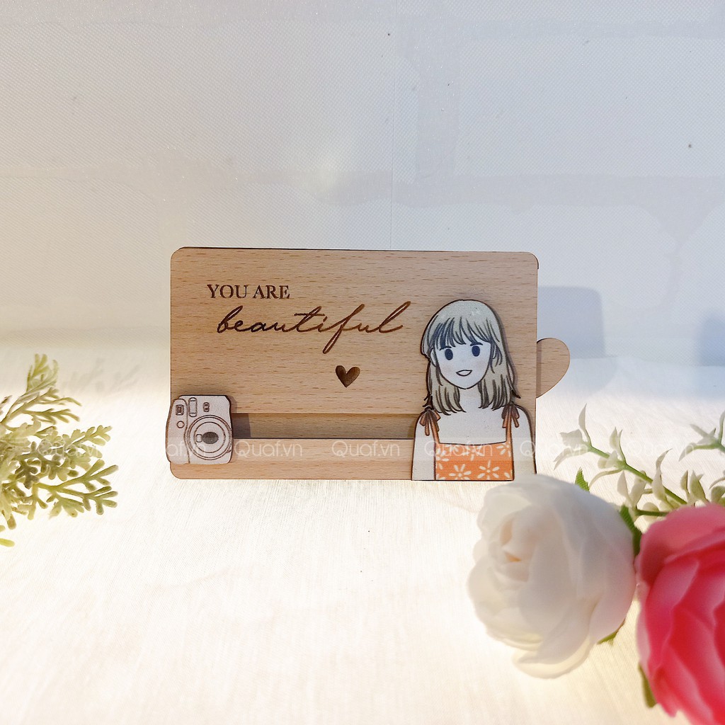 Con gái rất thích nhận được những lời khen có cánh. Chính vì vậy tấm thiệp gỗ handmade chuyển động "You are beautiful" chắc chắn sẽ khiến cô nàng bất ngờ.