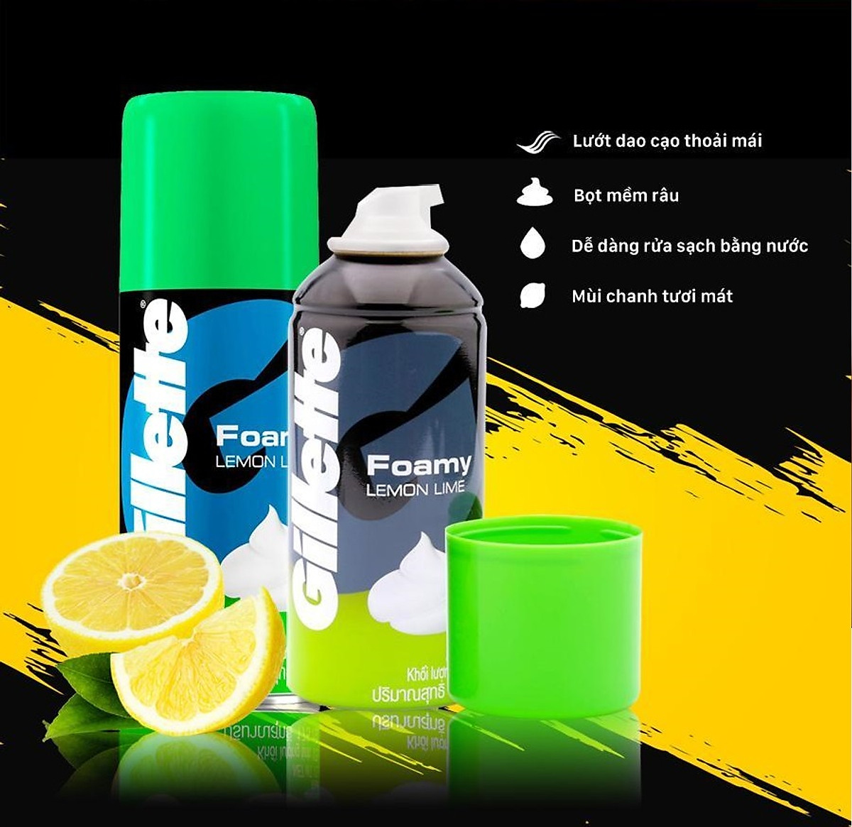 Bọt Cạo Râu Gillette Hương Chanh với thành phần chính từ thiên nhiên như dưỡng chất nha đam giúp làm mềm và dịu da sau khi cạo. Đồng thời bọt cạo râu cũng sẽ tạo thành một lớp trung gian bảo vệ da tránh tiếp xúc trực tiếp với da để hạn chế trầy xước. Sản phẩm có mùi hương chanh thơm mát, tạo cảm giác thoải mái khi sử dụng. Ngoài ra bọt cạo râu còn có tác dụng giúp cho việc cạo râu trở nên dễ dàng và nhanh chóng hơn, ngăn ngừa được viêm nhiễm da.