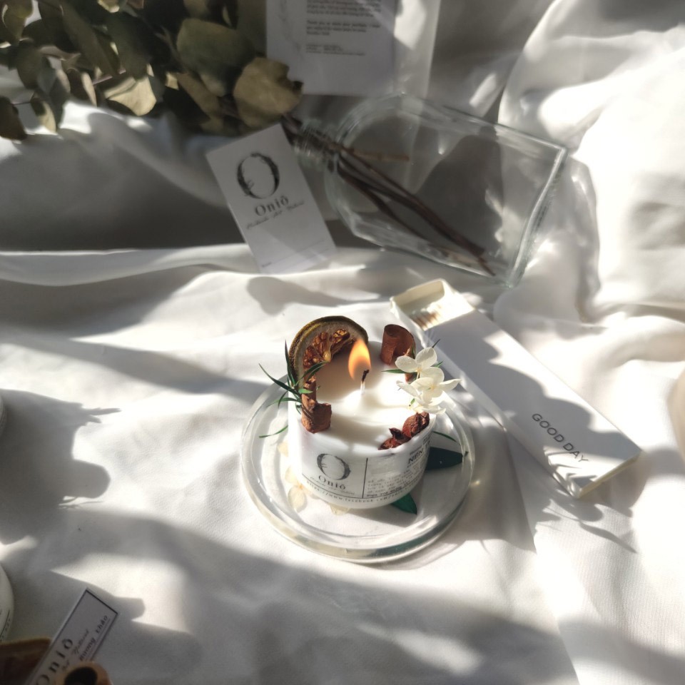 Nến trụ trang trí hoa khô tự nhiên với hương thơm từ tinh dầu thiên nhiên đến từ Oniõ là sản phẩm đang chiếm được tình cảm của đông đảo khách hàng cả nước. Mỗi ngọn nến được đổ bằng tay và gia công trang trí bởi những nghệ nhân khéo léo và tâm huyết. Đối với mỗi cây nến sẽ có một cách sắp đặt, trang trí các loại hoa lá khác nhau, tạo nên sự độc đáo, để mỗi sản phẩm là một tác phẩm nghệ thuật nhỏ, không hề trùng lặp. Khi thắp nến lên, thông qua thị giác, chúng ta sẽ cảm nhận được ánh sáng diệu kỳ len lỏi qua những chi tiết trang trí lung linh huyền ảo, khứu giác sẽ đón nhận hương thơm nhẹ nhàng lan tỏa của các loại tinh dầu thiên nhiên. Tất cả những điều đó khiến tâm hồn chúng ta trở nên thư thái đến lạ kỳ, để chúng ta cảm nhận được những điều diệu kỳ trong cuộc sống.