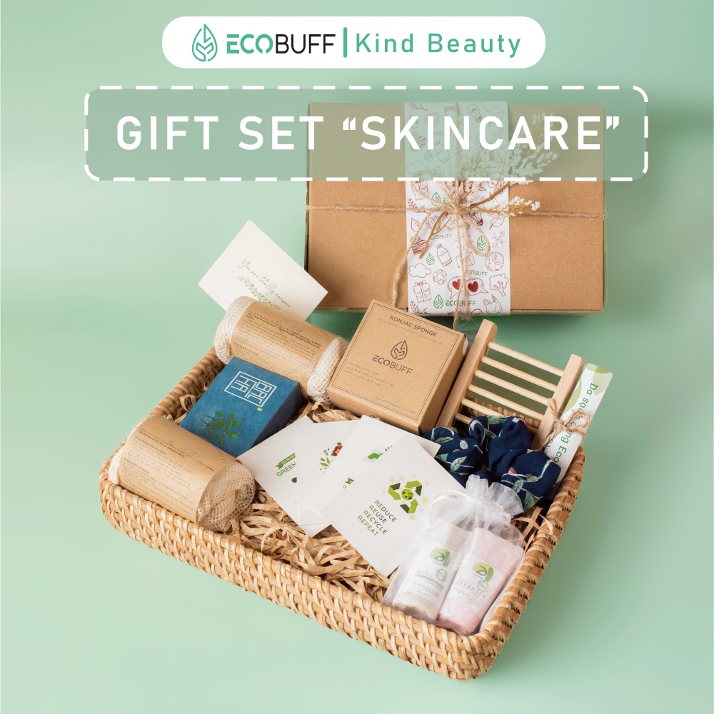 Ecobuff gift set "Skincare" với bông tẩy trang, mút rửa mặt, bánh tẩy trang, rửa mặt