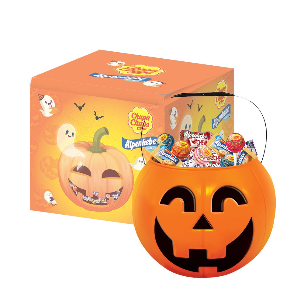 Vào ngày lễ Halloween, chúng ta không thể nào thiếu được những chiếc kẹo đủ màu sắc phải không? Với hộp bí ngô đầy ắp các loại kẹo Chupa Chups và Alpenliebe, bạn có thể cùng các bé tha hồ "cho kẹo hay bị ghẹo" nhé.