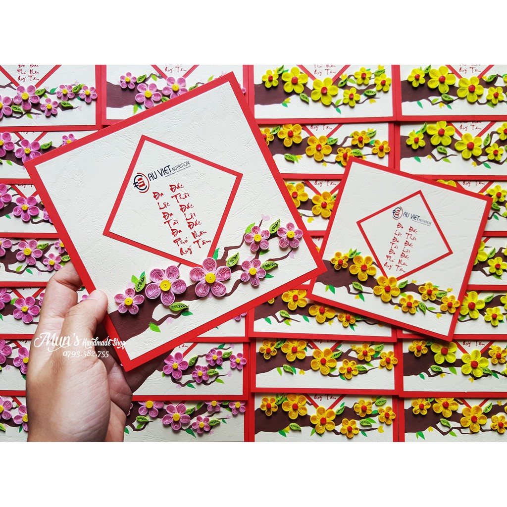 Thiệp giấy xoắn hoa đào hoa mai đua nở