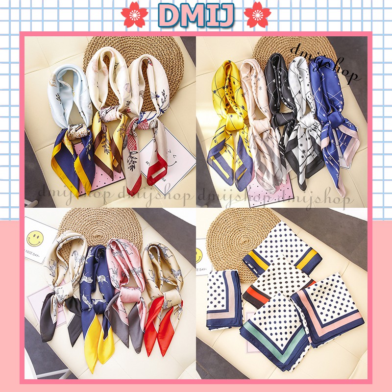 Khăn lụa hình vuông in hoa và họa tiết là sản phẩm được thiết kế nhiều kiểu họa tiết độc lạ từ nền nã, nhẹ nhàng với các loại hoa đến nổi bật, sang trọng với những họa tiết vintage. Khăn có chất liệu mềm mại, mỏng nhẹ dễ dàng để các chị em tạo kiểu. Với kiểu dáng hình vuông thay vì hình chữ nhật dài đây là món phụ kiện vừa đơn giản, vừa làm nên những điểm nhấn ấn tượng khiến bất cứ quý cô thanh lịch nào cũng hài lòng và muốn sở hữu. Bạn có thể phối khăn lụa với những chiếc áo sơ mi, quần âu hay thắt vào túi xách khi đi làm cũng rất nổi bật. Tuy nhiên, có một lưu ý cho các bạn khi giặt khăn lụa là không nên giặt máy hay ủi bằng bàn là có nhiệt độ cao.