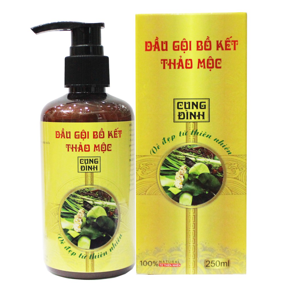 Bồ kết là một loại dược liệu dân gian vốn nổi danh với công dụng làm đẹp tóc, người xưa thường phơi khô và nấu nước gội đầu, đây là một trong những cách giúp tóc đen lâu không bạc. Dầu gội bồ kết thảo mộc Cung Đình này không những có thành phần từ bồ kết mà còn có thêm chiếc xuất từ vỏ bưởi giúp kích mọc tóc, hương nhu, lá sả, cỏ mần trầu,... giúp tóc mềm và suôn mượt. So với gội bồ kết truyền thống, em dầu gội này mang đến nhiều công dụng và hiệu quả hơn, là người bạn đáng tin cậy để bạn giao phó mái tóc của mình. Sản phẩm có hương thơm thảo dược thoang thoảng, theo đánh giá của người sử dụng, ngoài việc làm đẹp tóc, dầu gội này còn giúp kích thích lưu thông khí huyết và giúp nàng có giấc ngủ ngon hơn. Đây là một trải nghiệm cực kỳ thú vị khi chăm sóc tóc cho bạn.