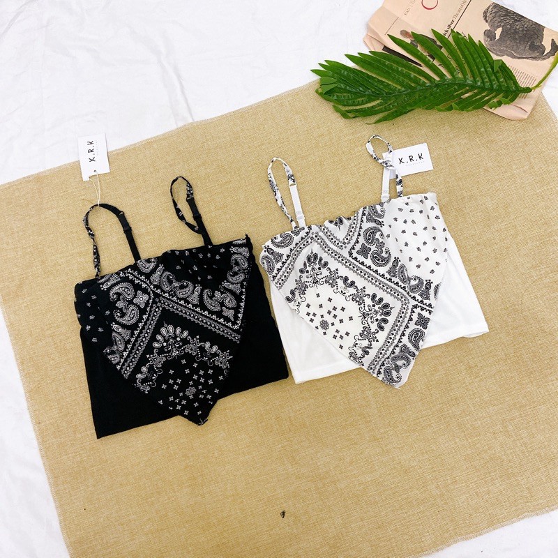 Áo hai dây croptop khăn bandana mix áo ống