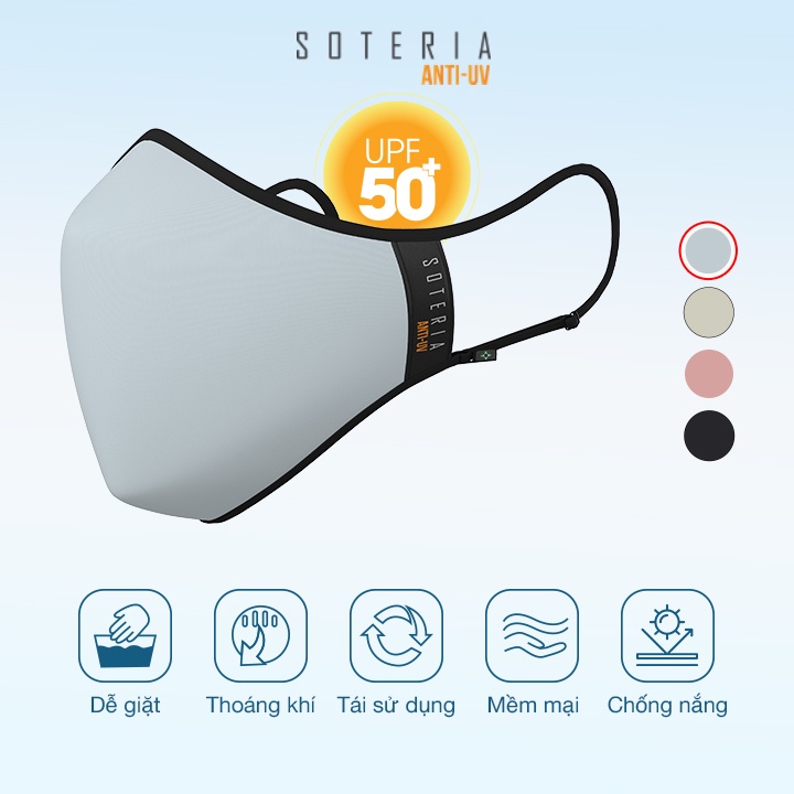 Đặc biệt, chiếc Khẩu trang chống nắng Anti UV Soteria SeaSalt đã vượt qua bài kiểm nghiệm nghiêm ngặt với kết quả chống tia tử ngoại lên đến 99%, chỉ số chống nắng đạt UPF 50+ bằng chất liệu vải đặc biệt. Ngoài ra, sản phẩm còn được tạo nên từ 04 lớp riêng biệt gồm: Mặt tiếp xúc da bằng lớp vải mịn không dệt – Lớp lọc bụi siêu mịn PM0.1 (đạt chuẩn PFE99, BFE99) – Lớp lọc than hoạt tính – Lớp ngoài bằng vải dệt đen cao cấp. Chính vì đa chức năng lọc, nên ngoài khả năng chống nắng và tia UV, sản phẩm còn dễ dàng ngăn chặn được các chất ô nhiễm, khói bụi, phấn hoa, bảo vệ hệ hô hấp của người dùng.