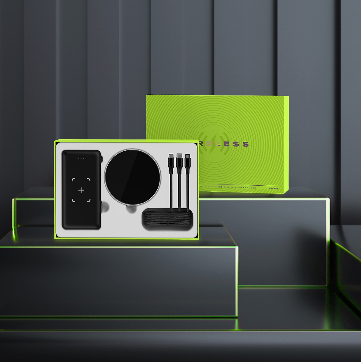 Kế đến là đế sạc không dây wireless 10W, có thiết kế hình tròn nhỏ gọn, bề mặt cũng được chống va đập trầy xước, tích hợp tính năng tự động ngắt khi pin đã sạc đầy hoặc quá nhiệt, quá tải, không gây nguy hiểm khi sử dụng. Cuối cùng là pin sạc dự phòng không dây 5W, có đến 2 cổng USB output cho bạn sạc đồng thời 2 thiết bị cùng lúc, hơn nữa cổng Type-C output nên sạc nhanh, dung lượng trữ lên đến 10.000 mAh giúp bạn sạc được nhiều lần.
