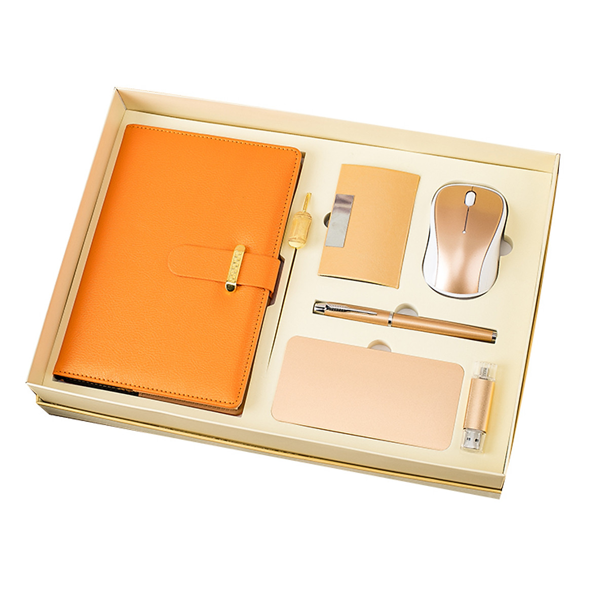 Bộ quà tặng gồm có đầy đủ các công cụ hỗ trợ cho người đi làm hành chính như sổ da, bút ký, ví đựng card visit, chuột không dây, sạc điện thoại, USB, tất cả đều theo một concept màu nhất định với các thiết kế đơn giản mà sang trọng. Khi bàn làm việc được trang trí với các món đồ tinh tế, cũng sẽ giúp mọi người cảm thấy thoải mái hơn, đồng thời thể hiện được cá tính riêng của mình.