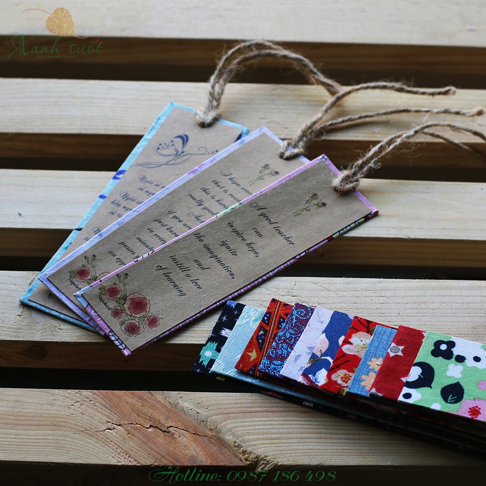 Kẹp sách handmade bọc vải Fabric Bookmark được làm từ giấy bìa cứng Kraft, là sản phẩm có khả năng kẹp sách một cách cứng cáp, mang đến sự tiện lợi cho người sử dụng. Thêm vào đó, vỏ kẹp sách được bọc thêm 1 lớp vải linen hoặc cotton với những hoạ tiết khác nhau, giúp cho kẹp sách thêm bền đẹp, khiến những trang sách khô khan không còn nhàm chán. Kẹp sách handmade được thiết kế với nhiều hoạ tiết khác nhau, giúp cho bạn dễ lựa chọn theo mẫu mã mà cô nàng của bạn thích. Mỗi chiếc kẹp sách đều được kèm theo những câu nói, những câu châm ngôn nhằm mang lại cảm hứng cho người dùng.