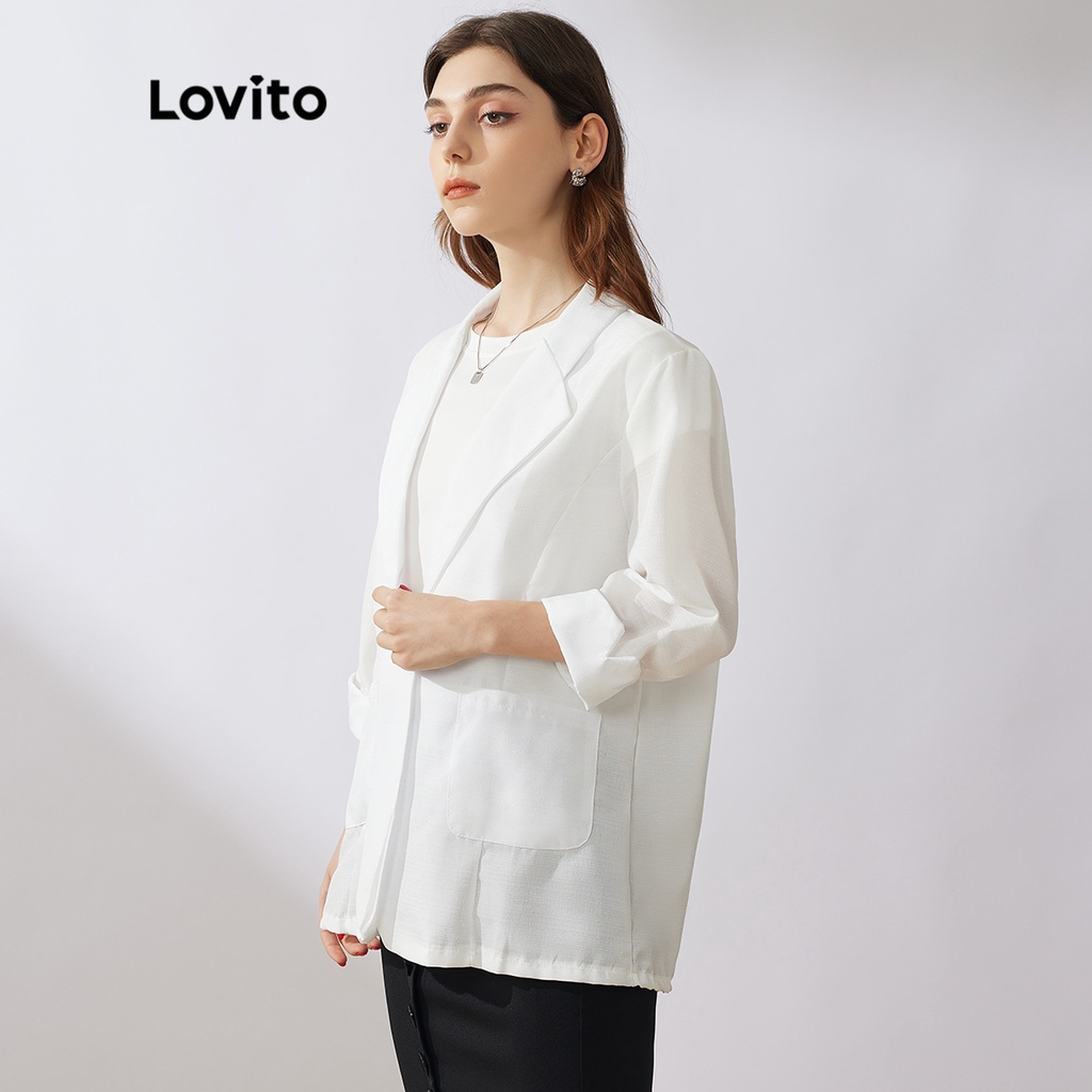 Áo khoác blazer Lovito màu trơn phối nút có túi phong cách sang trọng L18X432. Sản phẩm có màu trắng sang trọng và tinh tế, áo được làm từ chất liệu Polyester rất vừa vặn khi mặc vào người mang đến cho bạn sự thoải mái, sang trọng trước đám đông.