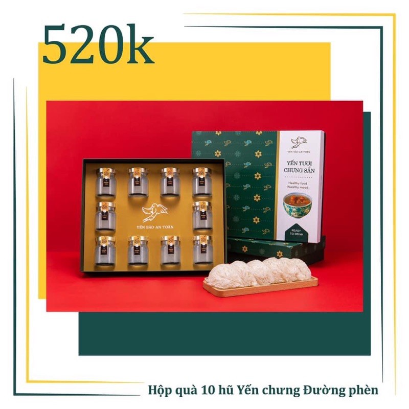 Set quà bao gồm 10 hũ yến chưng sẵn 70ml, ngon hơn khi sử dụng lạnh. Đây là quà tặng cực kỳ phù hợp với những người không có thời gian chưng yến bởi sản phẩm chỉ cần được bảo quản ở ngăn mát và lấy ra uống trực tiếp khi cần. Yến chưng sẵn vị đường phèn được đặc biệt khuyên dùng cho trẻ em biếng ăn, suy dinh dưỡng hay có sức đề kháng kém. Set quà sở hữu hộp và túi đựng có thiết kế sang trọng, đẹp mắt, phù hợp để làm quà biếu tặng ông bà, cha mẹ, khách hàng, đối tác,...
