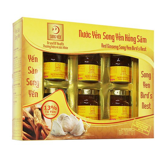 Yến hồng sâm thuộc dòng sản phẩm cao cấp của Yến Sào Song Yến với hàm lượng tổ yến lên đến 13% cùng với 5% hồng sâm tươi 6 tuổi được nhập khẩu từ Hàn Quốc - đây là loại hồng sâm đã qua sơ chế với hàm lượng Ginsenoside tăng cao theo độ tuổi của sâm. Sản phẩm phù hợp để sử dụng với người từ 3 tuổi trở lên, đặc biệt tốt đối với người gầy, người có cơ thể suy nhược, mệt mỏi, mất ngủ, căng thẳng nhiều, người ở độ tuổi trung niên hay người già. Nước yến hồng sâm 13% này có tác dụng tăng cường sức đề kháng cho cơ thể, mát phổi, bổ thận, bổ gan, làm đẹp da, làm chậm quá trình lão hoá,...