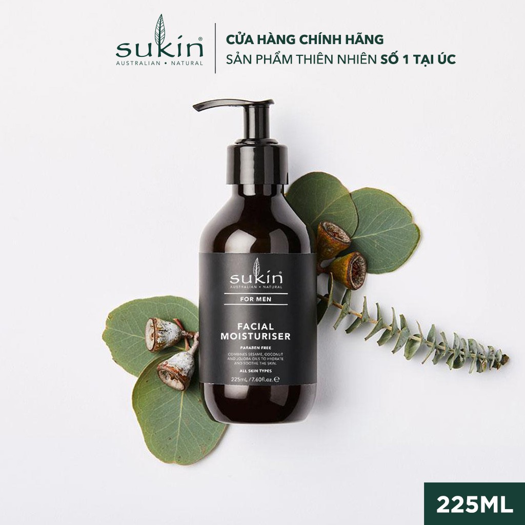Kem dưỡng ẩm dành cho nam Sukin For Men Facial Moisturiser đang là sản phẩm nổi bật trong dong mỹ phẩm chăm sóc da nam giới. Kem dưỡng ẩm có thành phần cấu tạo từ thiên nhiên nên rất dịu nhẹ với da, tiêu biểu như: Vừng giúp da giữ ấm và ẩm giúp cải thiện nâng tông màu da; Dầu dừa và dầu Jojoba giữ ẩm, làm mềm da; Nha đam giúp bổ sung độ ẩm và làm ẩm da tức thời; đặc biệt sản phẩm giàu Vitamin E thúc đẩy tái tạo và bảo vệ da hư tổn.