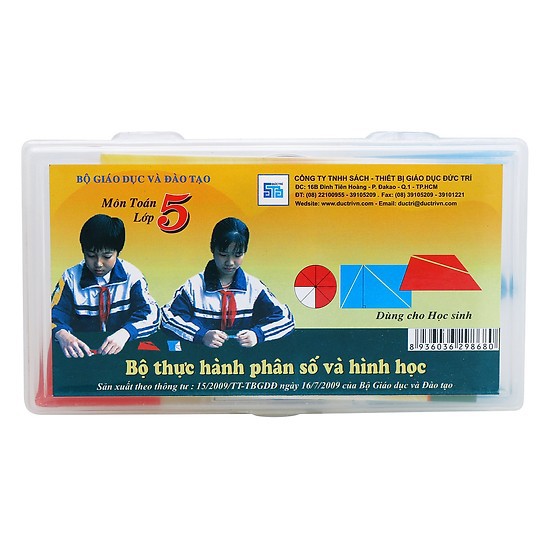 Sản phẩm bộ đồ dùng thực hành phân số và hình học môn Toán lớp 5 Bộ Giáo dục và Đào tạo đang được bán tại Văn phòng phẩm Hồng Hà với giá 30.000 VND (giá gốc: 40.000 VND), bạn có thể đặt mua ngay bằng cách nhấn vào đây.