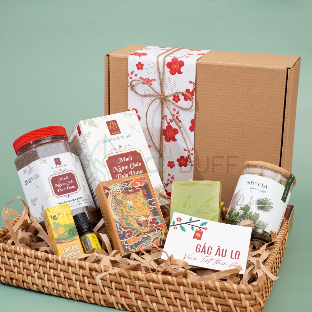 Combo quà 20/10 tiếp theo sẽ thể hiện sự quan tâm đến nàng bằng những điều nhỏ nhặt nhất trong cuộc sống. Combo này bao gồm trà thảo mộc cỏ ngọt, muối ngâm chân cao cấp Sinh Dược, tinh dầu sả chanh, xà bông thơm.