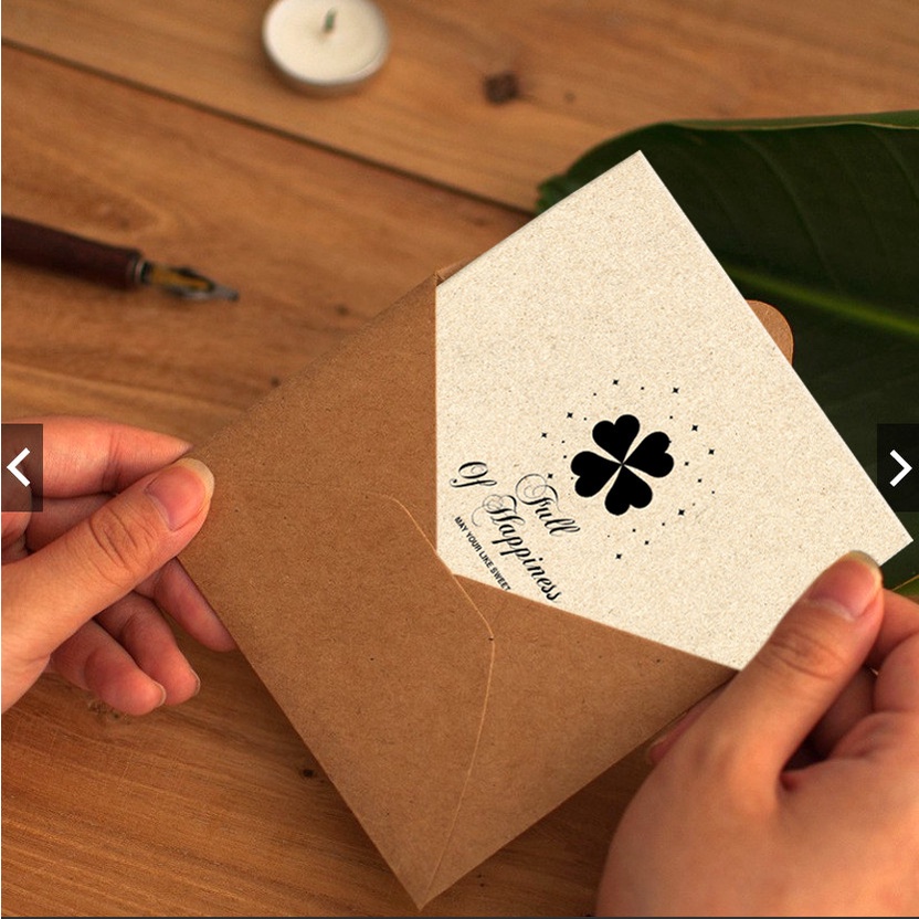 Thay vì chuẩn bị quà tặng lịch kịch thì việc lựa chon tặng những chiếc thiệp cảm ơn cũng là một trong những gợi ý hay để bạn tham khảo. Thiệp cảm ơn của cô dâu - chú rể không chỉ là cách để bạn gửi lời cảm ơn mà còn thể hiện được phong cách và gu thẩm mĩ của hai bạn. Thiệp được in một mặt trên giấy Krap Nhật và có tem tròn Thanh You đi kèm vô cùng ý nghĩa. Ngoài ra bên trong còn có mặt trắng để bạn có thể ghi lời cảm ơn nếu muốn bày tỏ tình cảm chân thành đến các vị khách mời có mặt trong ngày trọng đại của hai bạn.