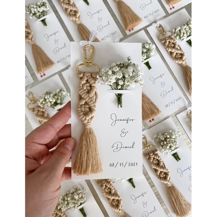 Móc khóa là món quà tặng nhỏ nhắn nhưng lại là món kỷ vật được nhiều người sử dụng hằng ngày và chắc chắn mỗi lần nhìn thấy họ sẽ nghĩ ngay đến người tặng là bạn. Vì thế mà lựa chọn móc khóa làm quà tặng cho khách mời đám cưới cũng là một ý tưởng hay giúp bạn gây được ấn tượng với người nhận. Móc khóa lưu niệm được làm hoàn toàn thủ công từ chất liệu sợi cotton chuyên dụng với nhiều màu sắc bắt mắt cho bạn lựa chọn. Tặng móc khóa có thể phù hợp cho mọi đối tượng và hai bạn có thể lựa chọn mẫu móc khóa tùy theo sở thích để phù hợp với đối tượng mà bạn muốn tặng.