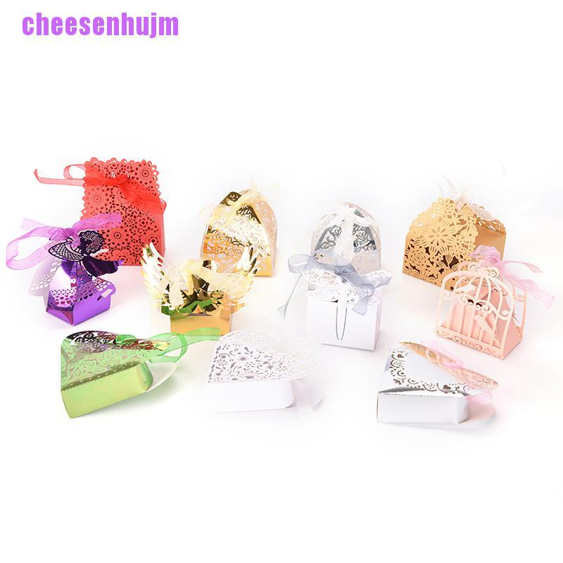Đây đích thực là những hộp đựng kẹo đầy sáng tạo. Chắc chắn khách mời của bạn sẽ cảm thấy vô cùng thích thú khi được cầm trên tay món quà siêu dễ thương này. Chiếc hộp xinh xắn này được làm từ giấy Embossed Paper có màu sắc sinh động. Các họa tiết như cánh bướm, lồng chim, hoa lá được cắt lazer cho đường nét cực kỳ sắc sảo, đồng thời cũng đã được xếp sẵn nếp nên bạn có thể xếp thành hình hộp rất dễ dàng. Mỗi hộp chứa được khoảng từ 5-8 viên kẹo ngậm. Sau khi cho kẹo vào trong hộp, bạn hãy thắt những chiếc nơ thật xinh để tạo thêm điểm nhấn nổi bật cho hộp quà nhé!