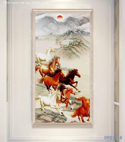 Tranh phong thủy dùng để trang trí với thiết kế sáng tạo, hiện đại, đơn giản sẽ là món quà tân gia không bao giờ lỗi mốt. Tranh Mã Đáo Thành Công BRO3258 là loại tranh cao cấp, bền màu sắc nét với thiết kế khung tranh hiện đại, đơn giản, nhiều màu sắc (Đen - Vàng nhũ - Trắng - Tràn viền) để bạn thoải mái chọn lựa.