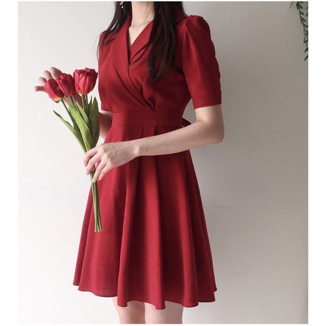 Đầm đỏ cổ vest đẳng cấp