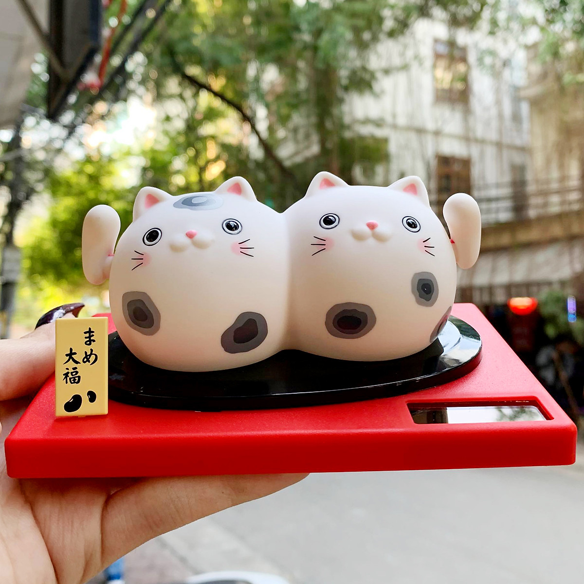 Mèo thần tài đôi vẫy tay năng lượng ánh sáng - Đuôi Trắng