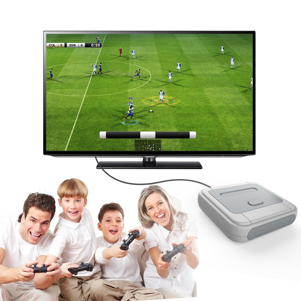 Máy chơi game cầm tay 4 nút HDMI có thiết kế nhỏ gọn, được tích hợp sẵn 3500 trò chơi kinh điển của tuổi thơ như: Mame (điện tử thùng), PS1, GB... sẽ là giải pháp giúp chúng ta xả stress một cách hiệu quả. Các tựa game huyền thoại như: Contra, Battle City (bắn tank), Super Mario, Mortal Kombat, Metal Slug (rambo lùn) cũng dễ dàng được tìm thấy trong máy chơi game này, đưa chúng ta về với những hoài niệm thơ ấu một cách dễ dàng nhất. Máy có kích thước nhỏ gọn và trọng lượng nhẹ chỉ 500gr, giúp người dùng dễ dàng cầm nắm và thực hiện các thao tác. Máy có các đặc điểm nổi bật như hệ thống mã nguồn mở Linux, dung lượng thẻ 32GB, hỗ trợ chơi cùng lúc cho 2 người, hỗ trợ chơi CPS / FC / GBA / PS1 / MD / SFC / GB / GBC và các định dạng trò chơi khác... Bộ sản phẩm gồm có 1 gậy trò chơi TV, cáp sạc USB, đầu thu USB cho gamepad, 2 gamepad không dây (không bao gồm pin), cáp bộ chuyển đổi HDMI.