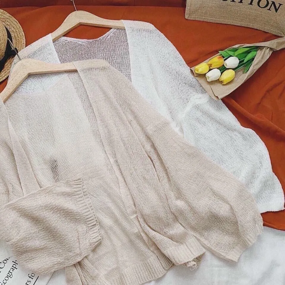 Áo khoác cardigan mỏng tăng phần kín đáo cho đầm hai dây