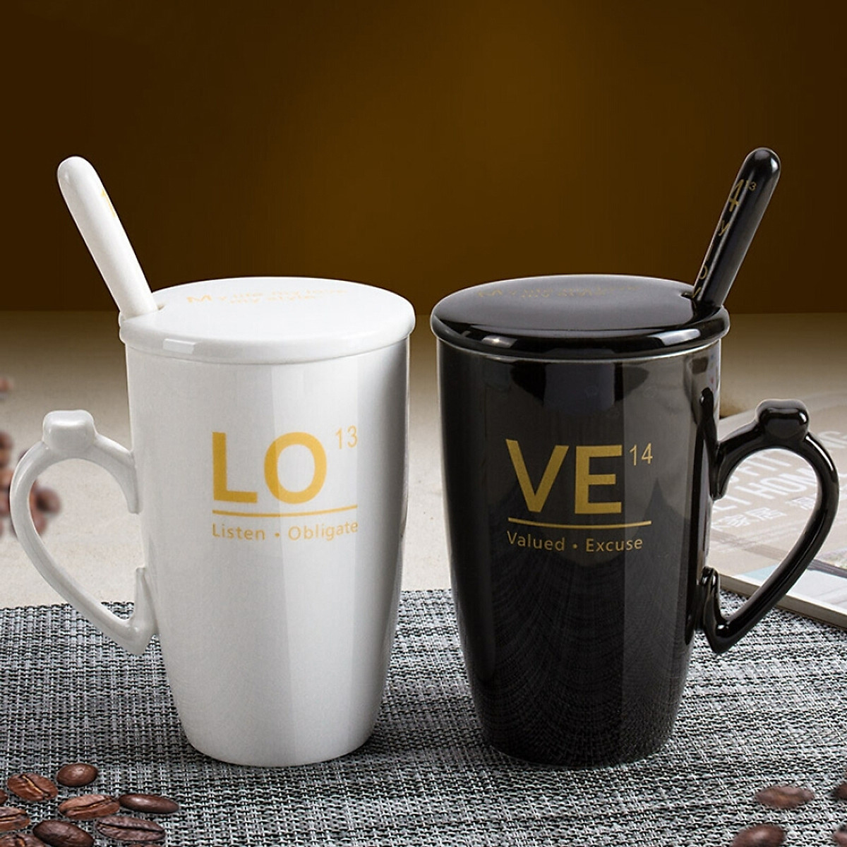 Hiện nay, trên thị trường có bán rất nhiều mẫu cốc đôi, cốc tình nhân với hình dáng và hoạ tiết bắt mắt để bạn có thể lựa chọn làm quà tặng cho cả 2 nhân kỷ niệm 1 năm yêu nhau. Đặc biệt hơn, bạn có thể dùng dịch vụ in hình ảnh của các bạn lên hai chiếc cốc để thể hiện tình yêu và tuyên bố với cả thế giới rằng chúng ta đã là “hoa có chậu”. Bạn có thể tham khảo bộ sản phẩm Ly sứ đôi kèm muỗng đến từ thương hiệu Bethus. Sản phẩm có trọng lượng chỉ 0.92 kg được thiết kế đơn giản với 2 màu chủ đạo trắng - đen nhưng cũng không kém phần sang trọng. Bộ sản phẩm còn có có nắp đựng và thìa tiện dụng cho việc uống trà, cafe và các loại nước hoa quả detox. Cốc in hình chữ LOVE tách làm đôi mỗi chiếc 1 nửa. Đó cũng nhưng một lời tỏ tình mà các cặp đôi thường dành cho nhau.