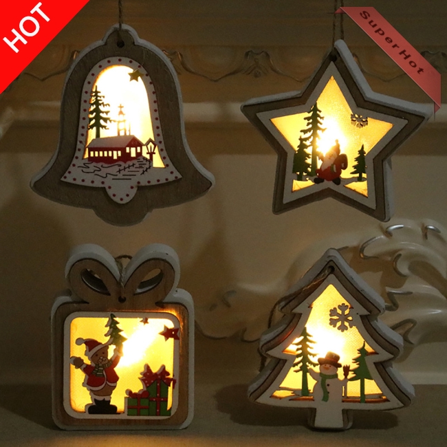 Bộ sưu tập đèn ngủ bằng gỗ được khắc họa 3D tạo thành các hình dáng cây thông, ngôi sao, quả chuông, món quà đáng yêu. Bên trong có đèn led và một số hình ảnh nhỏ trang trí làm cho không khí lễ Noel trở nên ấm áp hơn hẳn. Đèn được chạy bằng pin nên bạn dễ dàng sử dụng, có thể thay pin khi hết. Sản phẩm được dùng để trang trí phòng ngủ, bàn làm việc, cây thông Noel,..