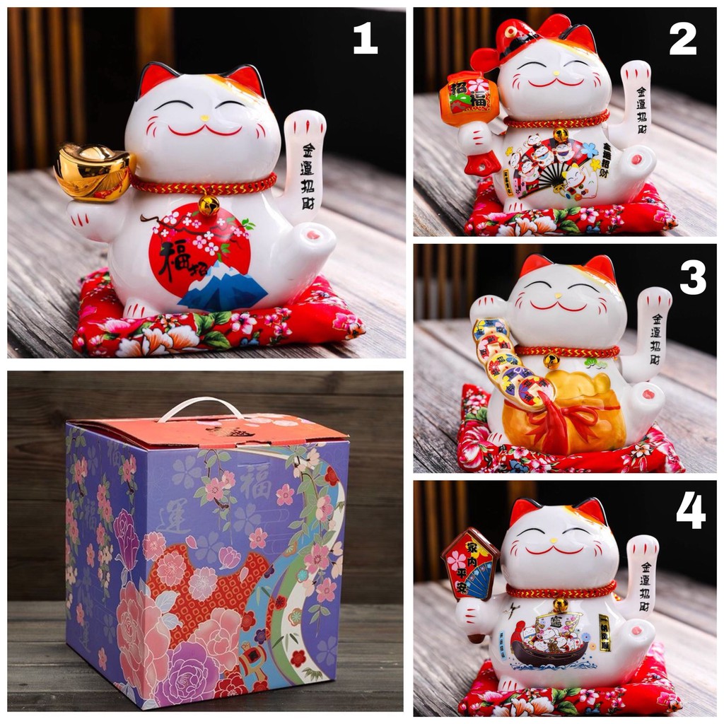 Mèo thần tài vẫy tay là vật phẩm phong thuỷ cực kỳ phổ biến và quen thuộc, được nhiều người lựa chọn làm quà tặng phong thuỷ. Món quà này không chỉ đẹp, dễ thương mà còn có ý nghĩa mang tài lộc dồi dào đến cho gia chủ. Sản phẩm mèo thần tài vẫy tay cao 10cm, lấy năng lượng từ ánh sáng mặt trời hoặc đèn điện. Có bốn mẫu mèo thần tài cho bạn lựa chọn, bao gồm mèo thỏi vàng, mèo cầm búa, mèo dây tiền và mèo thẻ bài.