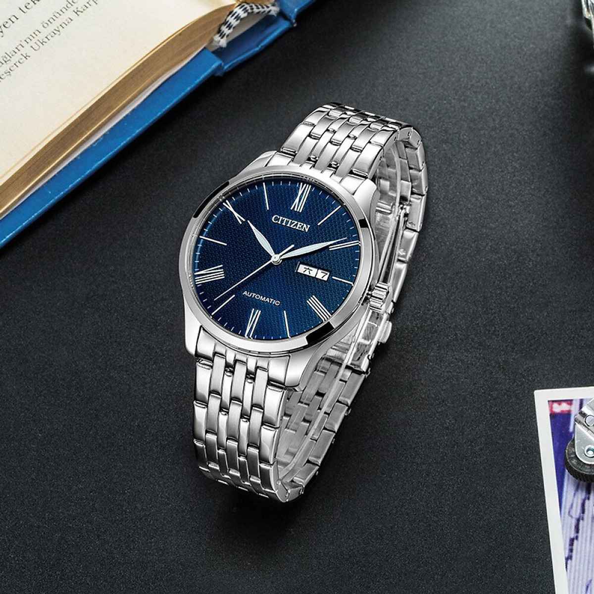 Đồng hồ Citizen NH8350-59L là mẫu đồng hồ thời trang luôn lọt top những sản phẩm đồng hồ cơ được ưa chuộng nhất trên thị trường. Sản phẩm sở hữu thiết kế đơn giản, không quá cầu kỳ với sắc xanh chủ đạo kết hợp với tông bạc sang trọng, mang đến một vẻ ngoài sang trọng, đẳng cấp, cực kỳ phù hợp với đối tượng người trung tuổi như các ông bố. Sản phẩm sở hữu mức giá không quá cao nhưng vẫn được trang bị máy cơ lắp ráp cực tốt bởi chính hãng Miyota nên bạn có thể hoàn toàn yên tâm về chất lượng.