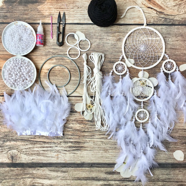 Dreamcatcher là món quà tặng handmade mang ý nghĩa của chiếc vòng đuổi bắt giấc mơ. Khi treo dreamcatcher ở những nơi đón ánh sáng dễ chạm vào thì dreamcatcher sẽ hút tất cả những giấc mơ và suy nghĩ vào mạng lưới của nó. Những giấc mơ tốt sẽ nhẹ nhàng được giữ lại trong tâm trí để an ủi người ngủ ở dưới. Còn những giấc mơ xấu sẽ rơi vào vòng lưới và bị nhốt lại rồi tan biến khi ánh sáng mặt trời buổi sớm rọi qua. Cách làm những chiếc dreamcatcher cũng khá đơn giản do đó bạn cũng có thể tự làm để tặng cho người yêu bằng cách tham khảo video sau đây. Bộ nguyên liệu làm Dreamcatcher màu trắng sẽ giúp bạn hoàn thành món quà tặng này một cách nhanh chóng nhất. Sản phẩm với đầy đủ dụng cụ để bạn tự làm một chiếc dreamcatcher ngay tại nhà.