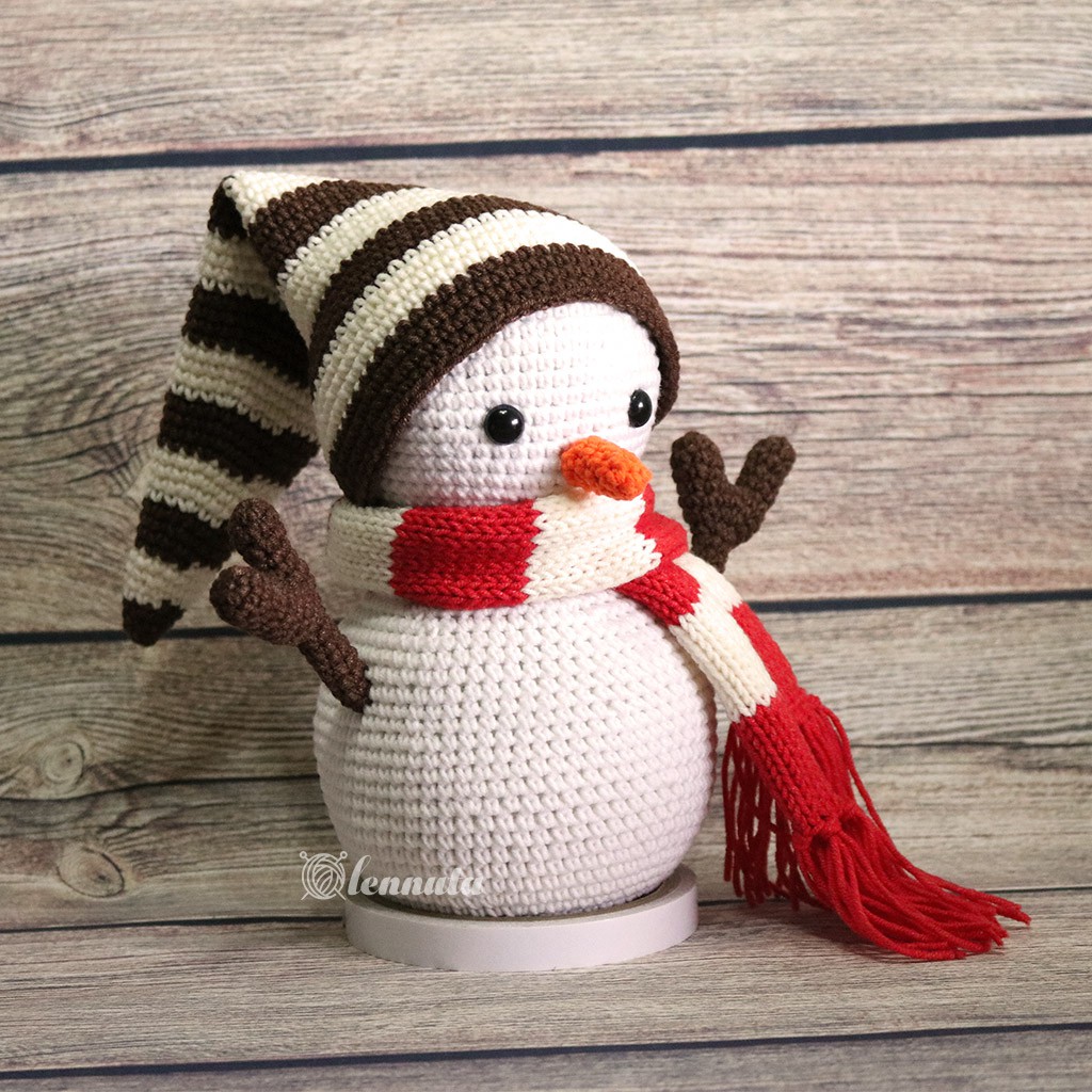 Sản phẩm được móc len bằng tay rất công phu, kết cấu bao gồm người tuyết, khăn quàng cố ấm áp và mũ chóp xinh xắn. Mỗi mũi đang móc đều chắc tay tỉ mỉ có may thêm một lớp lót bên trong rồi mới nhồi bông. Với chất liệu len cotton milk cao cấp đảm bảo không xù không nhão, chú người tuyết này vô cùng mềm mịn, nhồi bông xoắn 3 chiều tạo cảm giác đàn hồi và tinh khiết, không gây dị ứng nên rất thích hợp để ôm vào lòng. Người tuyết là biểu tượng không thể thiếu trong mùa Noel. Món quà này tượng trưng cho an lành, bình an và niềm vui, giúp hai bạn thêm gắn kết với nhau. Lưu ý về vệ sinh sản phẩm: nên giặt tay, không dùng chất tẩy mạnh, nếu bạn muốn giặt máy nhớ chọn chế độ giặt len trong 20-30 phút.
